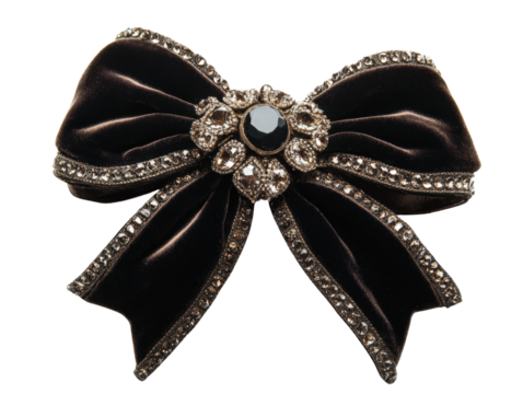 Elegant black bow with sparkling gems, perfect for accessories and fashion.
