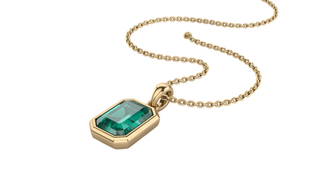 Exquisite emerald pendant necklace crafted in gleaming gold, a symbol of elegance and luxury for special occasions.