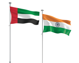 Two shipping containers painted with Indian and American flags being lifted by cranes, symbolizing trade relations, import-export agreements, and economic cooperation between India and the United Stat