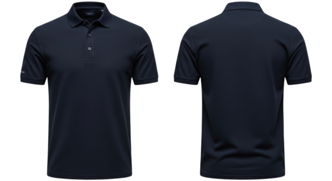 Dark blue polo shirt mockup front and back view transparent background cutout png