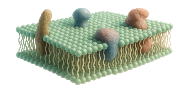 Phospholipid bilayer membrane with integrated proteins.