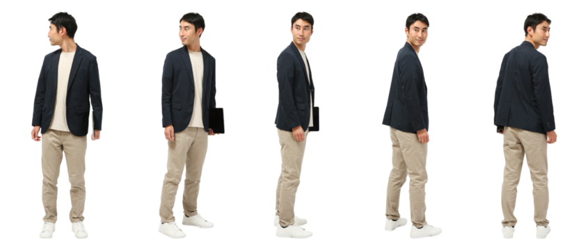 Businessman unveiling blue shirt symbolizing inner strength, transparent background