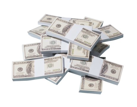 Transparent hourglass with dollar bills falling symbolizing time and money