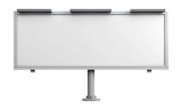 A large, blank billboard with a white screen and lights, isolated on a transparent background