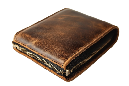Brown Leather Wallet Product Shot isolated PNG with Transparent Background