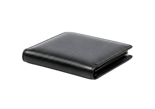 Elegant black leather wallet folded and stylish design for men accessories isolated on transparent background