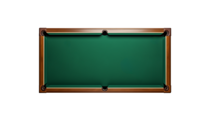 Billiard table top view cutout. Isolated green billiard table on transparent background