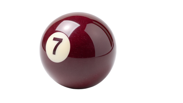 Red eight ball PNG isolated on transparent background, billiards and pool game equipment for sports and recreation