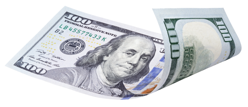 American hundred dollar currency bills fan shape isolated transparent background photo PNG file