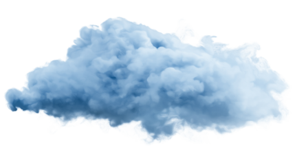 Blue smoke cloud floating on a transparent background, perfect for creative design and artistic projects
