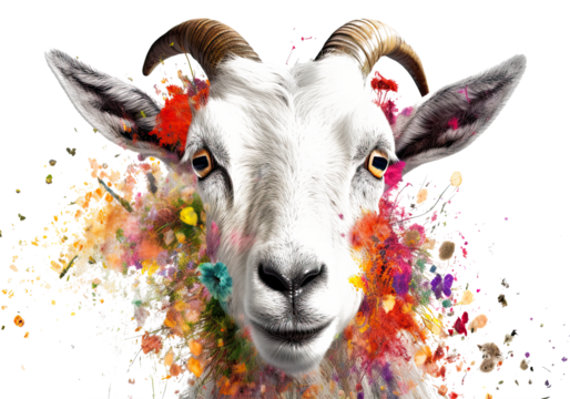 Transparent Background Generative AI Billy Goat Paint Splatter Floral