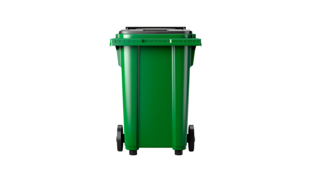 Green recycling bin isolated, waste container for garbage disposal and environmental protection on a clean background