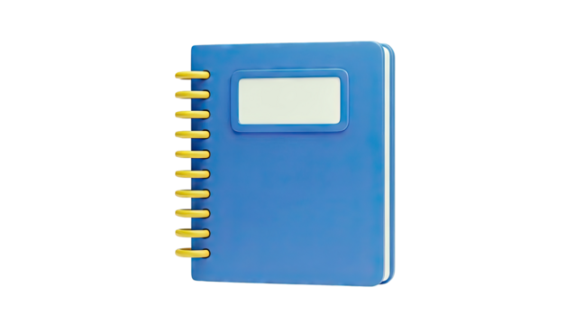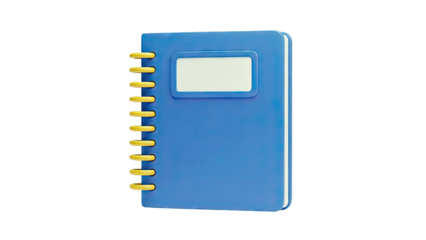 3d icon of stack of three blue ring binders with blank labels and confetti isolated on transparent background