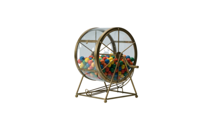 Gold Brass Lottery Machine with Colorful Balls Isolated on White Background