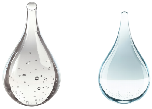 Transparent water droplet with bubbles in various sizes and shapes isolated on transparent background.