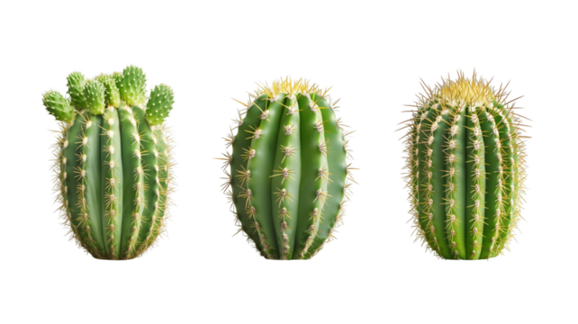 Exploring the Fascinating World of Cacti: A Close-Up of Three Distinct Cactus Varieties on Transparent Background