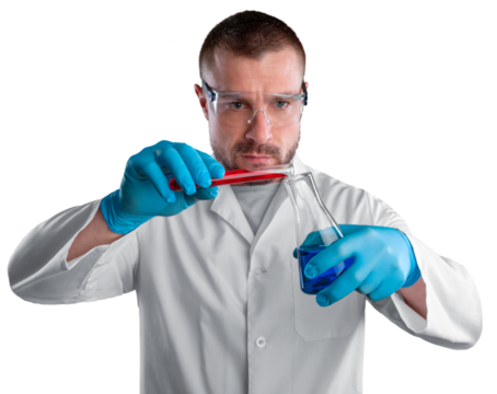 Scientist man with liquid in researcher test tube