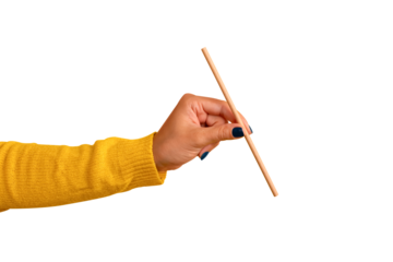 Close-up of a hand in a yellow sleeve holding a biodegradable straw isolated on transparent, showcasing sustainable lifestyle choices.