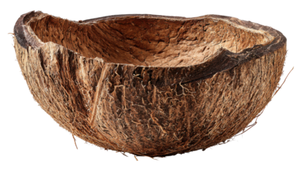 Half coconut shell natural tropical fruit husk texture organic food ingredient eco material rustic bowl isolated studio object on white background
