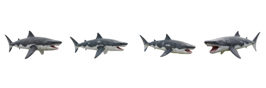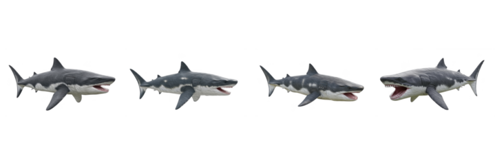 Set of Extinct Megalodon Group Isolated on White Background