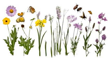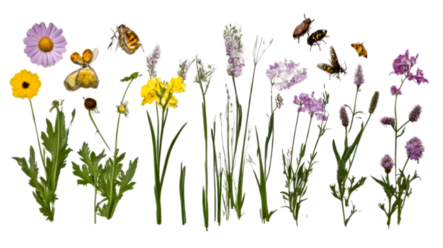 Colorful wildflowers and bees in garden setting during spring