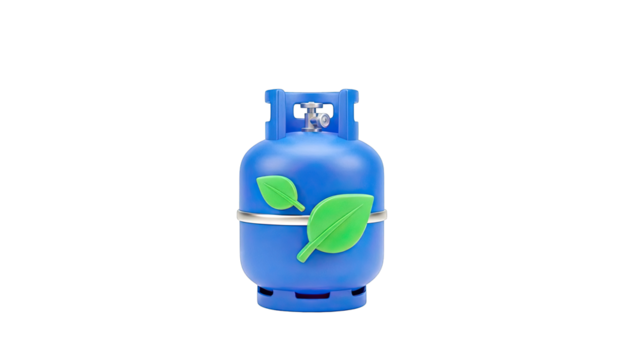 Blue propane tank with green leaves and silver band