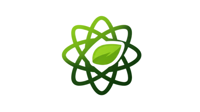 Green eco atom leaf symbol logo