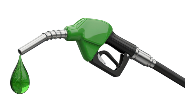 Green Fuel Nozzle Dripping Biofuel Drop with Leaf Symbol