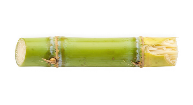 A single stalk of green sugarcane of transparent