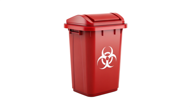 Biohazard rubbish bin with warning symbol and red color, medical waste Transparent background, PNG