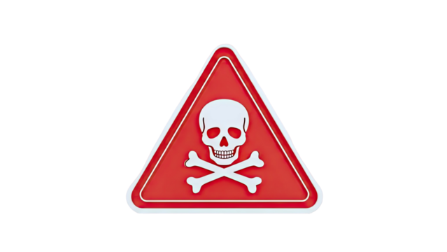 Yellow triangular biohazard warning sign with black symbol isolated on transparent background