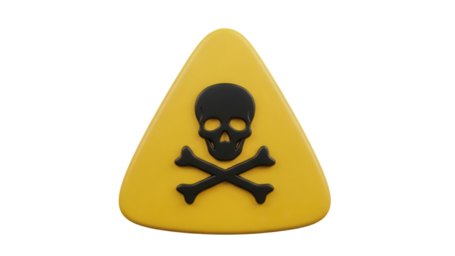 Yellow triangular warning sign with skull and crossbones isolated PNG, danger symbol for hazardous materials on transparent background