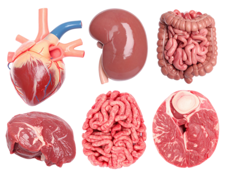 Detailed Anatomical Illustrations of Human Internal Organs Set Against a Transparent Background