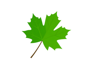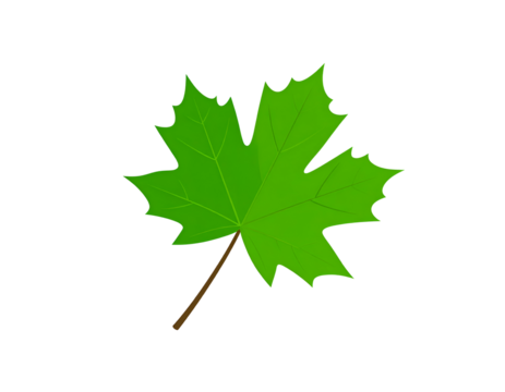 Vibrant green maple leaf with serrated edges and a brown stem