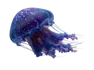 Cosmic jellyfish nebula deep sea bioluminescence underwater, Isolated On White, Transparent Background, Png