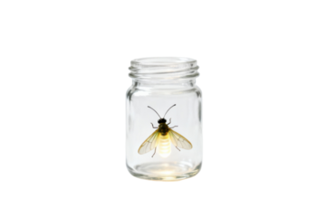 Glowing firefly PNG isolated on transparent background, bioluminescent insect with wings for nature and summer designs