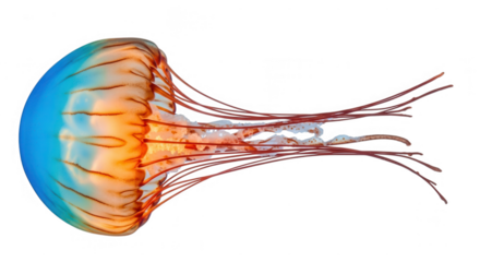 A vibrant jellyfish with blue and orange hues floats gracefully isolated on transparent background