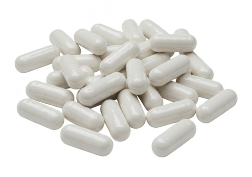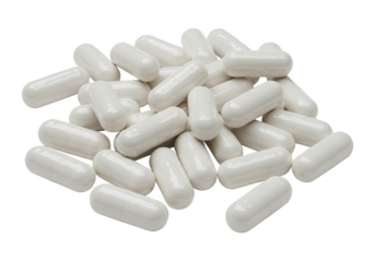 Isolated White Capsules Stacked Medication For Health With Transparent Background