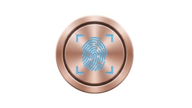 Fingerprint scanner on bronze surface isolated PNG, biometric security system for access control and personal identification