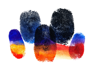 Colorful fingerprint art pieces, showcasing diverse patterns and hues against a black backdrop