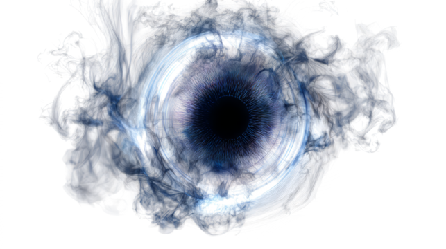 Digital eye scanner with abstract technological elements, representing security, cybernetics, and advanced data processing