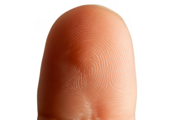 Human finger showing unique fingerprint pattern, representing identity, security, authentication, and biometric data on transparent background