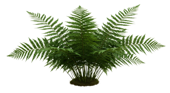 A lush green fern plant with delicate fronds spread wide 1.