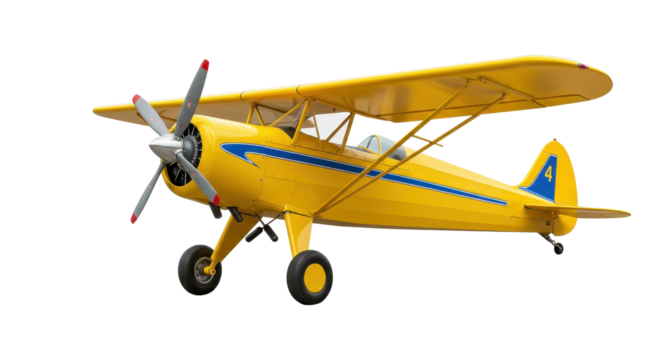 A classic vintage biplane aircraft, cutout, PNG transparent background