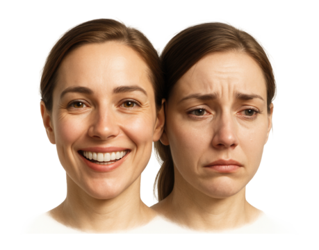 Two faces showing happy and sad emotions, representing bipolar disorder.