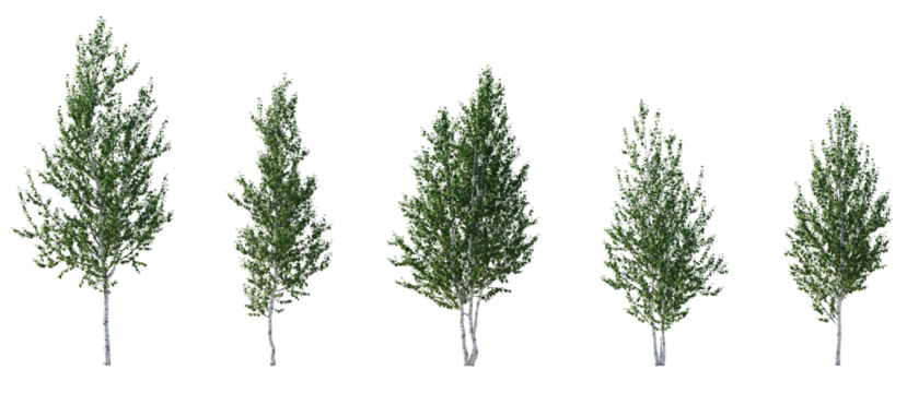 Birch trees betula medium trees isolated png in sunny daylight on a transparent background premium cutout