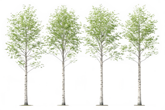 Three Birch Trees on Transparent Background