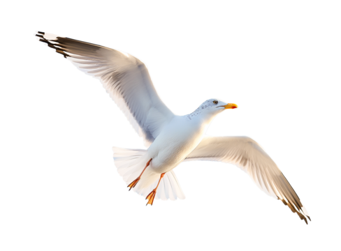 Starling bird spreads its wings mid-flight, captured against a pure white background, png.