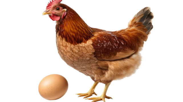 Hen and egg together showcasing natural farm freshness, perfect for poultry, agriculture, and organic food themed visuals isolated on white background