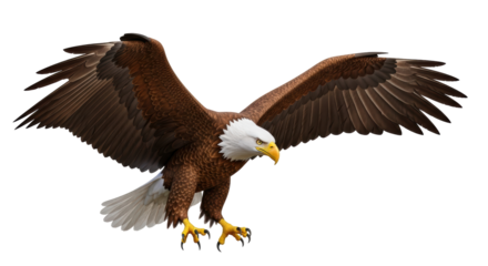 Majestic brown eagle with spread wings on transparent background